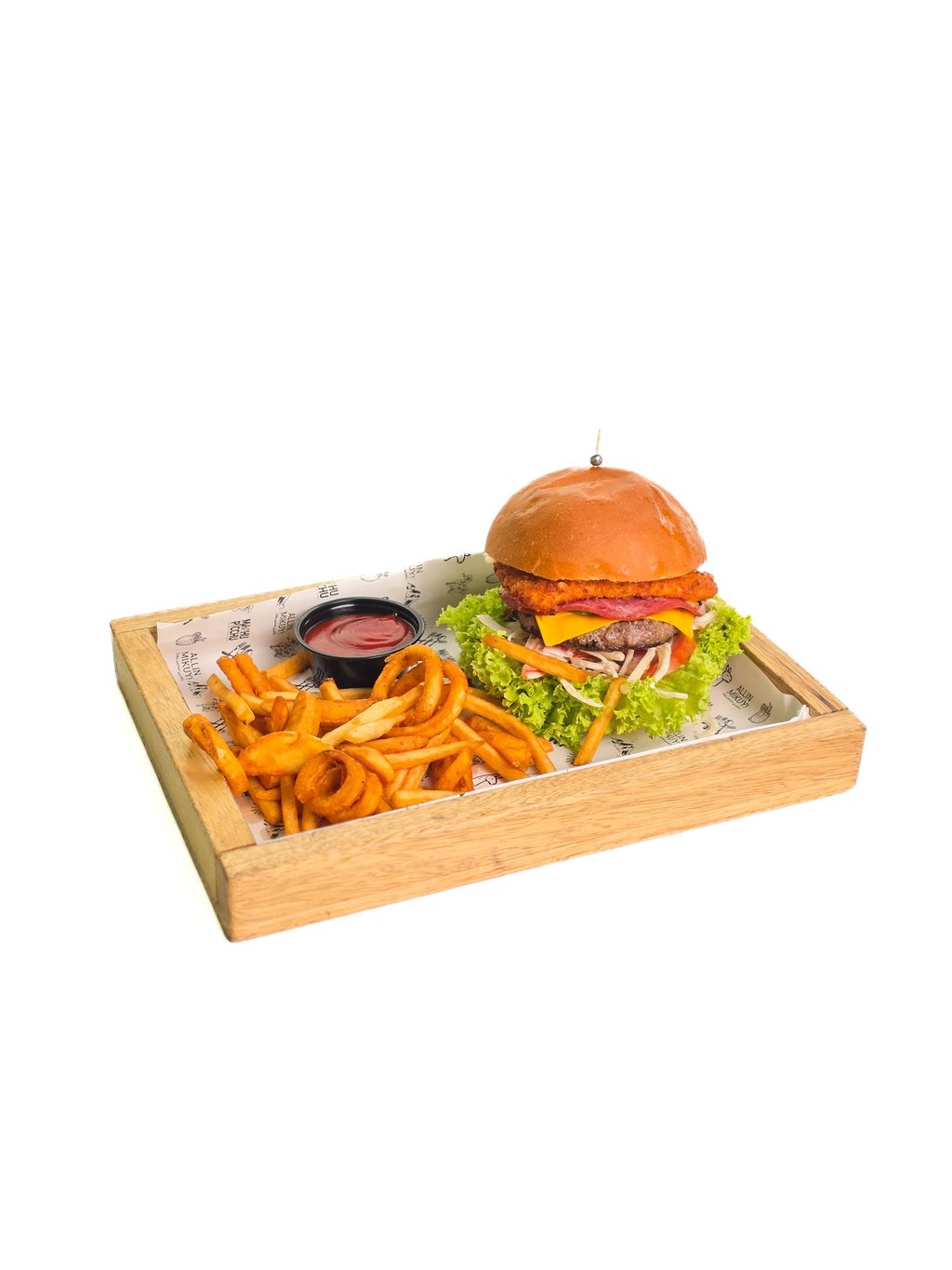 بيف بلاك أنجوس ، بيف بيكون ، خس ، بصل مكرمل ، مكس تشيز