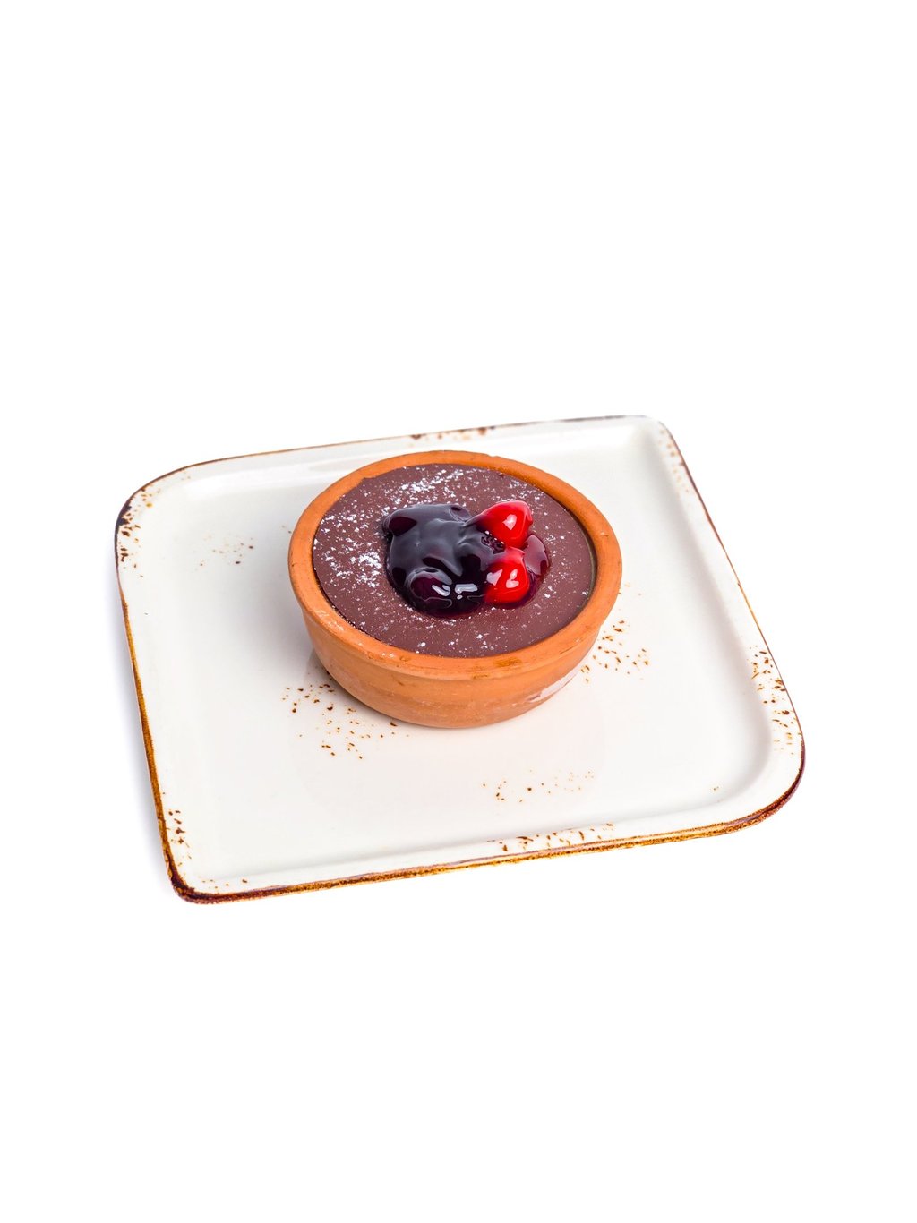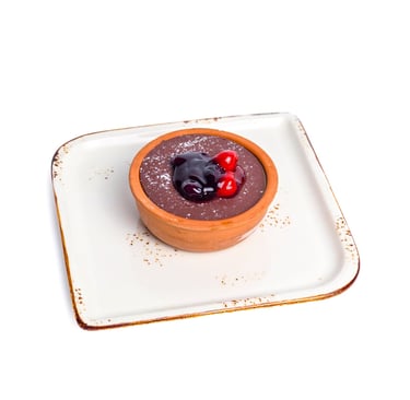 Crispy Osmalieh filled with cheesecake cream, served with chocolate.