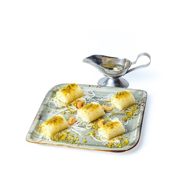 Soft fresh white cheese rolls, topped with sugar syrup.