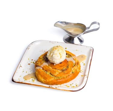 Osmaliya dough topped with your choice - light milk cream or ice cream.