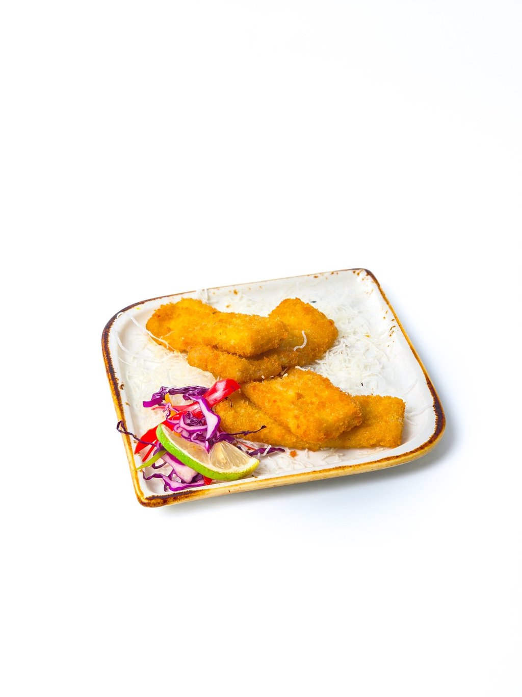 Fried halloumi cheese coated with crushed almonds