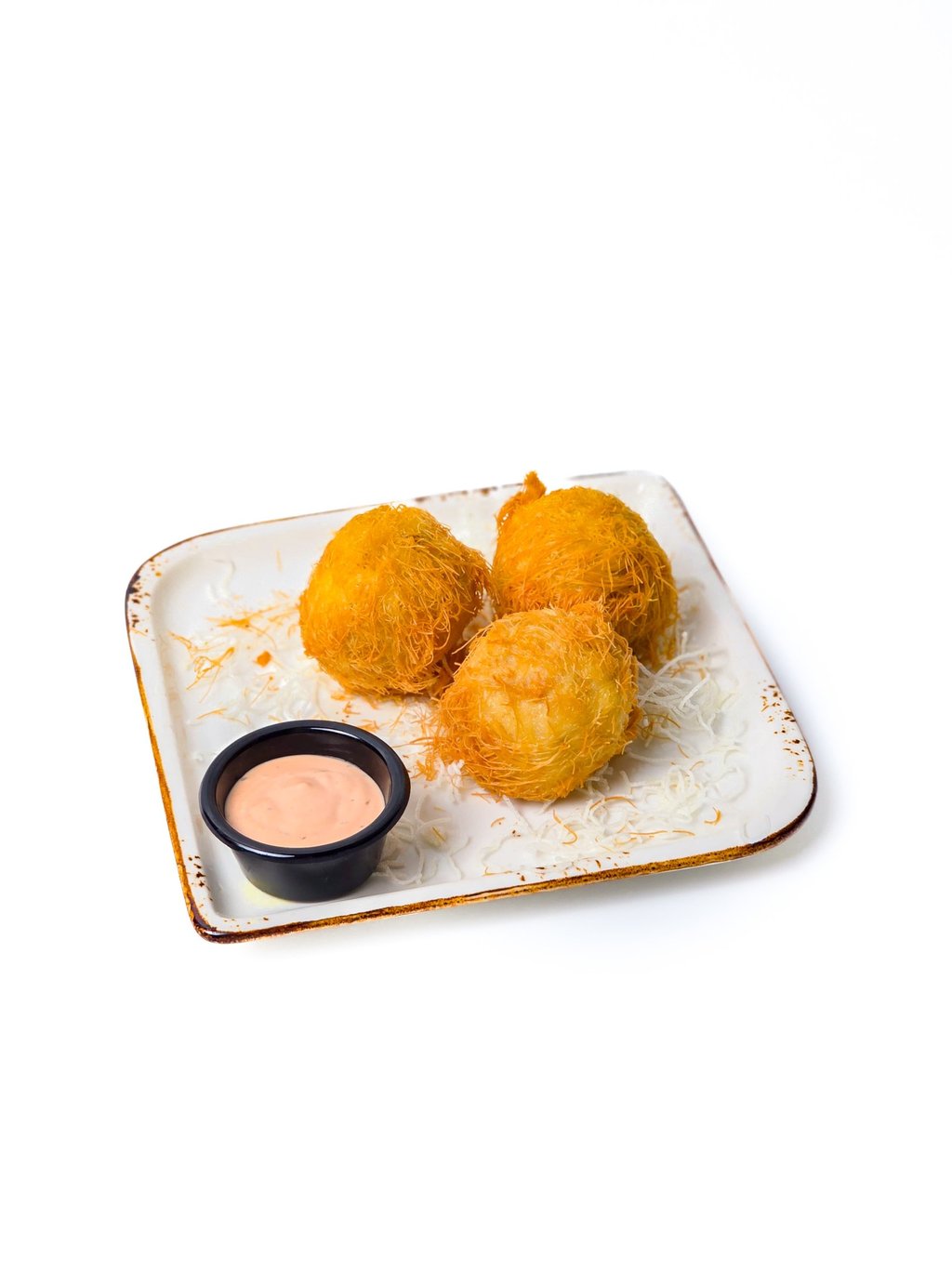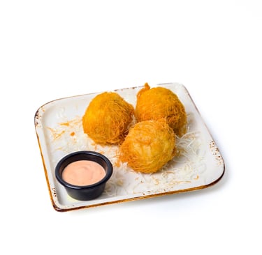 Chicken balls stuffed with cheese and pistachio.