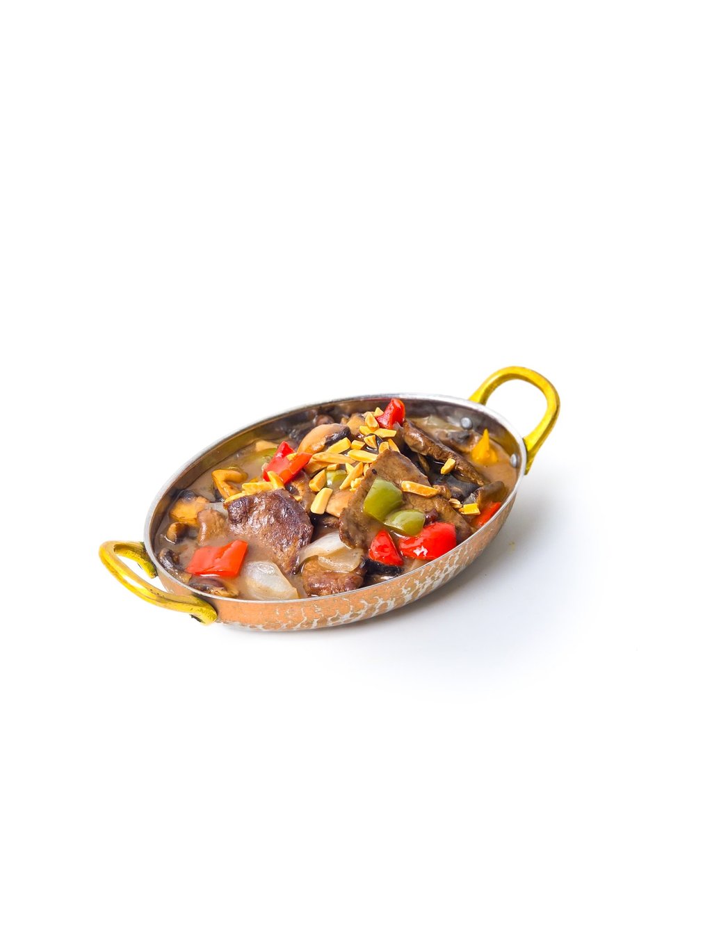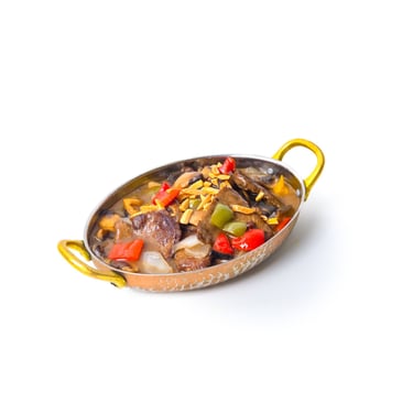 Pan-fried meat and vegetables served with gravy sauce.