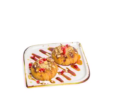 Fried kibbeh with vegetables, walnuts, and special sauce.