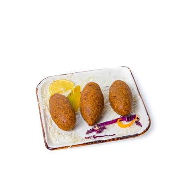 Fried minced lamb coated in a blend of cracked wheat and lamb meat.