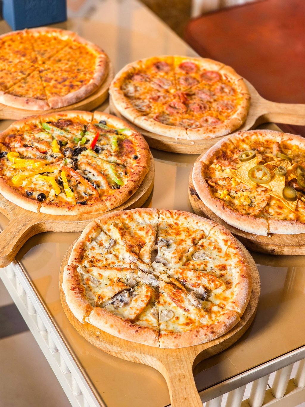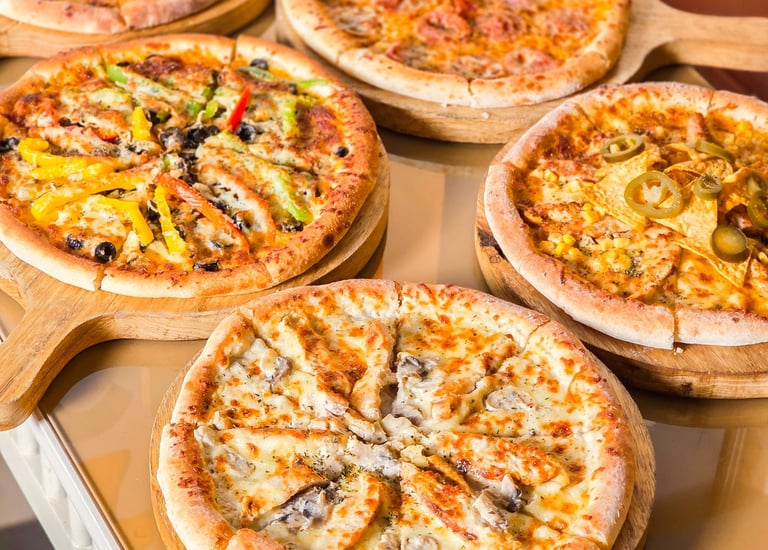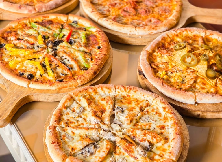 A variety of handcrafted pizzas baked to perfection, featuring fresh ingredients and bold flavors.