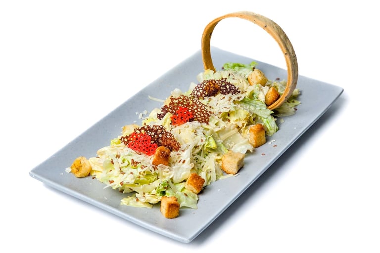 Iceberg lettuce, croutons, parmesan, flax seeds.