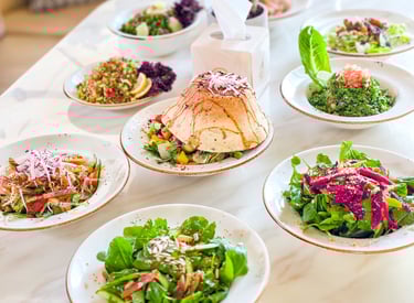 Fresh, colorful salads made with seasonal vegetables and light, flavorful dressings.