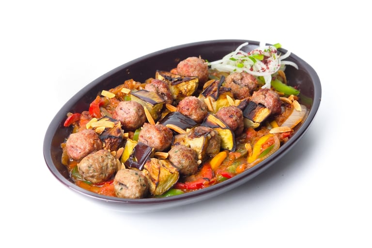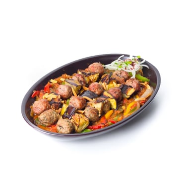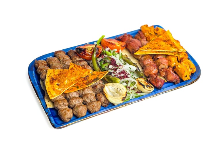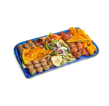 Charcoal grilled selection of kebab, shish tawook and meat cubes.