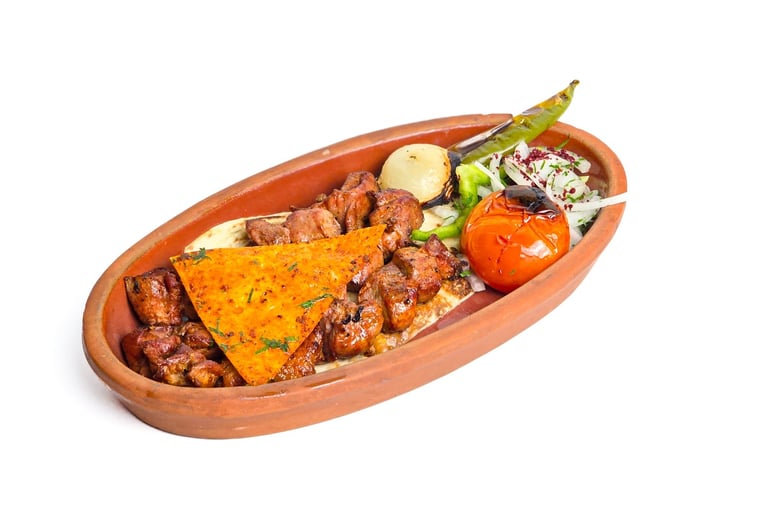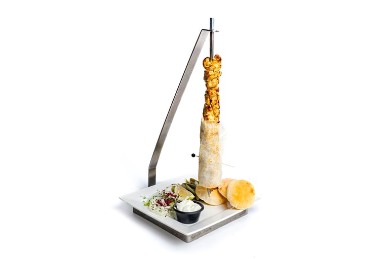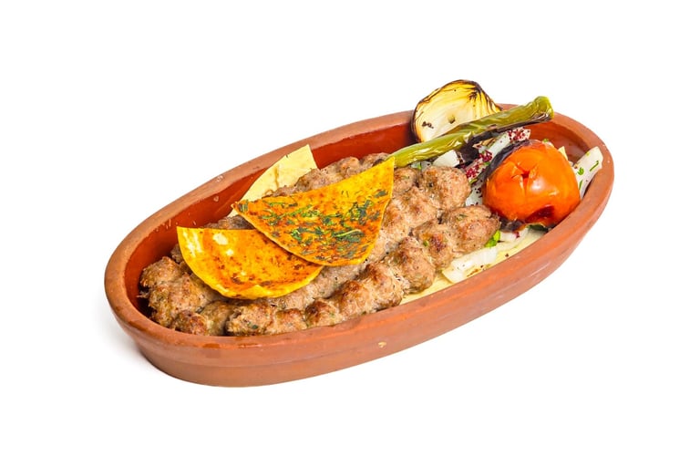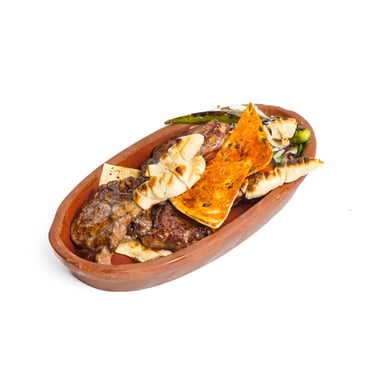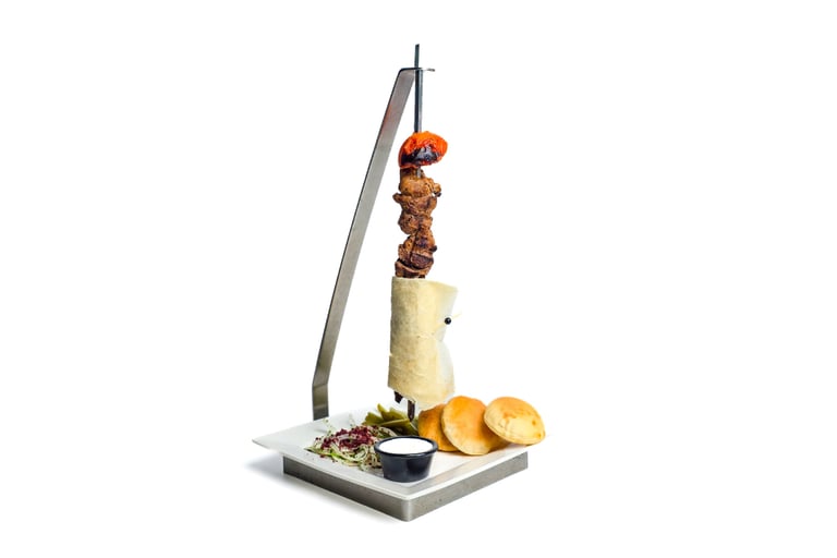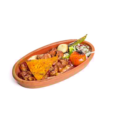 Charcoal grilled sliced meat marinated in a special chef way served with pita bread, tahini sauce and pickles.