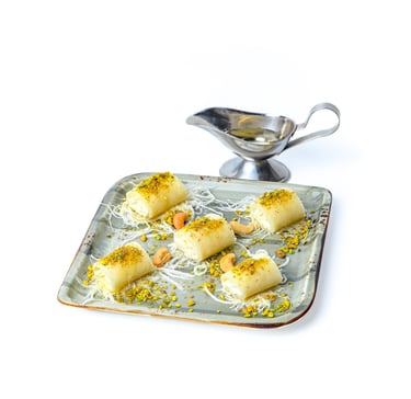 Soft fresh white cheese rolls, topped with sugar syrup.