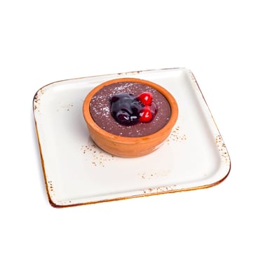 Crispy Osmalieh filled with cheesecake cream, served with chocolate.