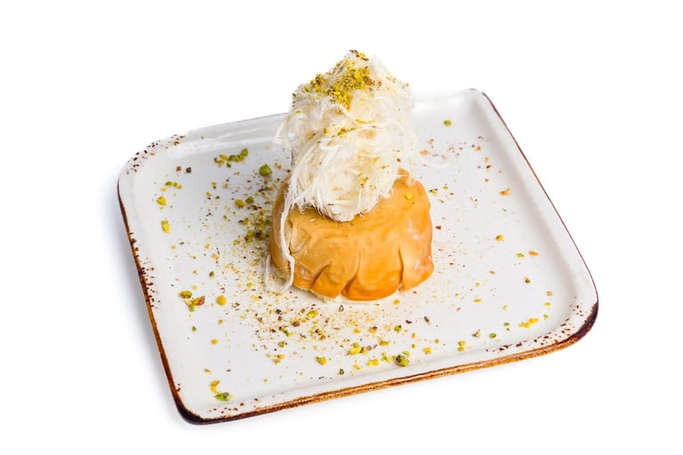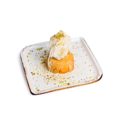 Osmaliya dough topped with your choice - light milk cream or ice cream.